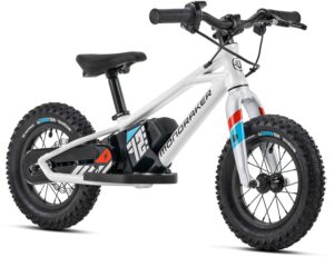 Telaio: Grommy 12 6061 Alloy Stealth Evo, HHG internal cable routing, Resin footrest, Resin motor cover, Resin chain protector, Post mount disc brake mount. Materiale del telaio: alluminio Dimensione delle ruote: 12" Colore: Dirty White Forcella: MDK 12 Kid, Rigid alloy Stealth stanchions Freni: Tektro MD-510 Mechanical hydraulic, flat mount caliper, 140mm IS 6 bolts rotor Dischi freno: 140mm Leve freno: Tektro JL-350RS kids specific alloy 4 fingers Serie sterzo: FPD CHEX-1089, Internal ZS, 44/50 upper and lower cup Attacco manubrio: MDK, 6061 melt forged alloy, 25.4mm barbore, rise: 0º, length: 30mm Manubrio: MDK 1.0, 6061 alloy, rise: 25mm, width: 500mm, 9º backsweep, 5º upsweep, 25.4mm barbore Manopole: Kids Sella: MDK Kids series Reggisella: One piece Push Guarnitura: 10T, steel Cassetta: DNP freewheel 16T Catena: KMC Z33 Half Link, 1 speed Copertoni: Vee Tire Crown Gem 12x2.25 27TPI Wired Bead Mozzo anteriore: KT K88F 9x100mm cup&cone ball bearings Mozzo posteriore: KT TV-3R 9x110mm cup&cone ball bearings Raggi: CN round stainless steel Cerchi: MDK-Push 12, alloy 21mm internal width, 28 spokes Display: MDK LED Throttle 3speed position, battery range. Batteria: MDK 4Ah 80Wh Motore: MDK brushless 250w Output Pedali: non incluso nella fornitura Peso: 7.5 kg Mondraker GROMMY 12