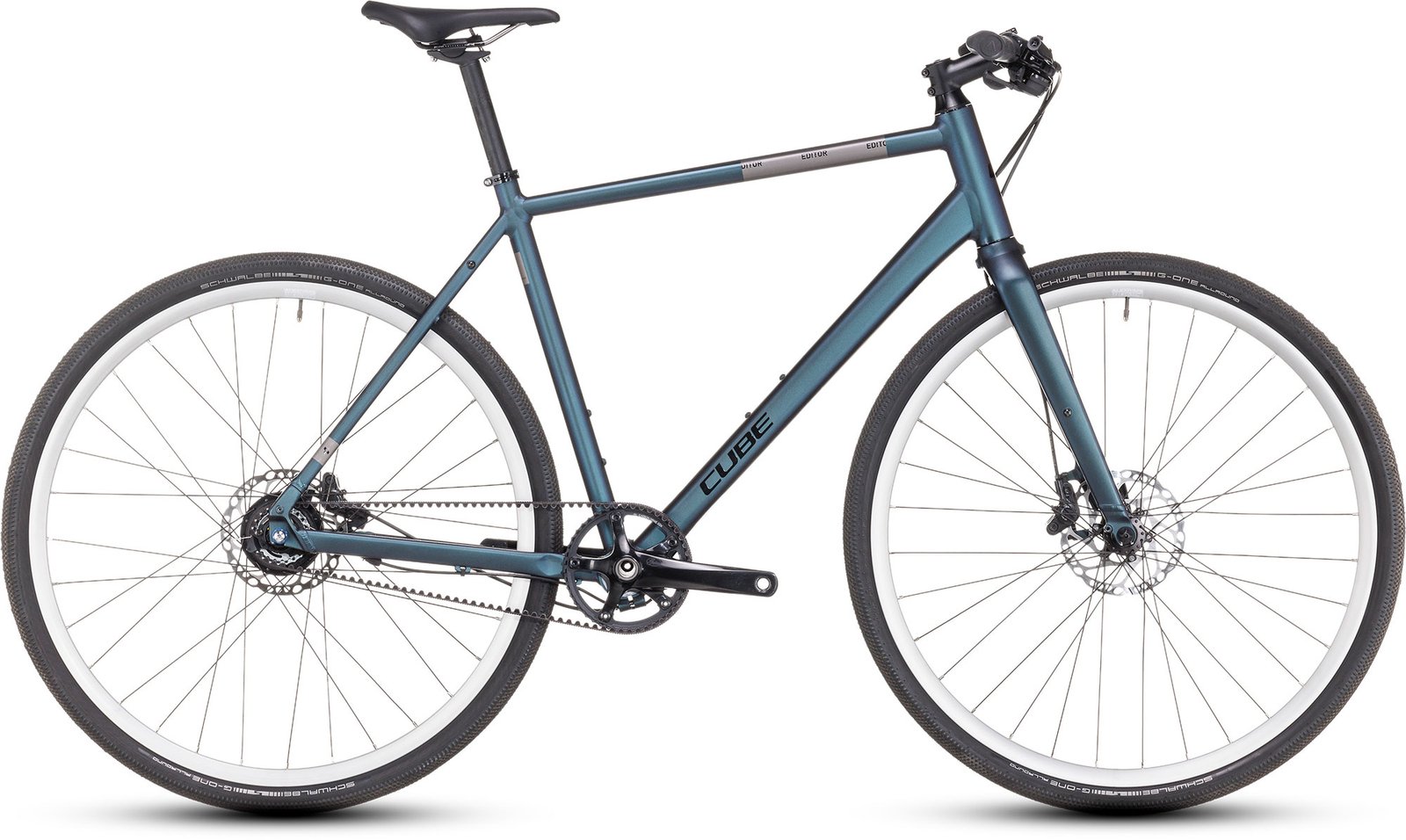 Ispirato alle mountain bike hardtail CUBE, il telaio dell’Editor utilizza tubi in alluminio a doppio spessore e ruote da 700c a scorrimento rapido per garantire velocità e comfort. I punti di montaggio del portapacchi e del parafango, perfettamente integrati, ne facilitano la personalizzazione, mentre il movimento centrale eccentrico e il forcellino diviso accolgono la trasmissione a cinghia che richiede poca manutenzione. L’elegante forcella rigida è l’accompagnamento perfetto, in grado di offrire uno sterzo nitido e preciso, in linea con il peso ridotto e l’aspetto sobrio.