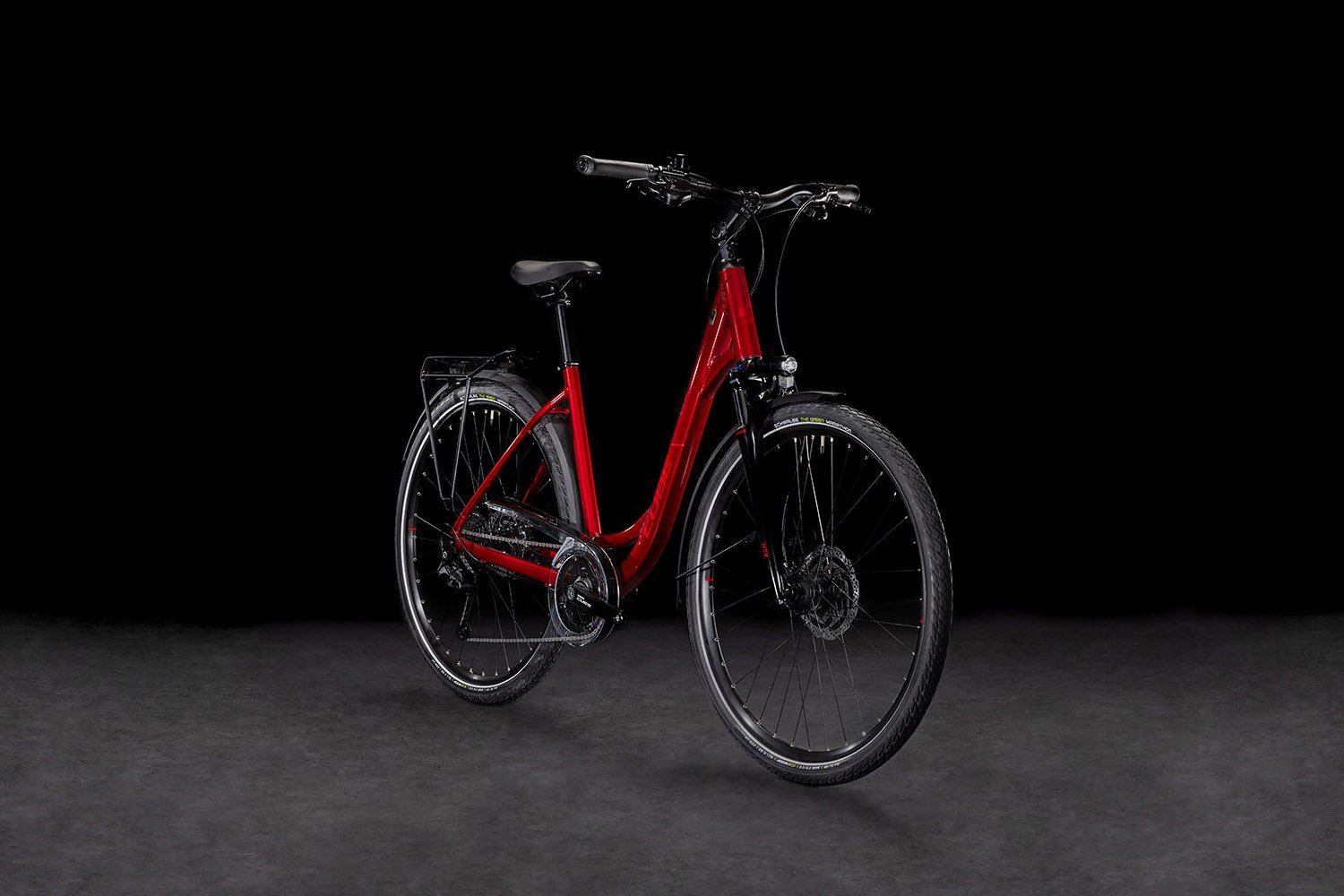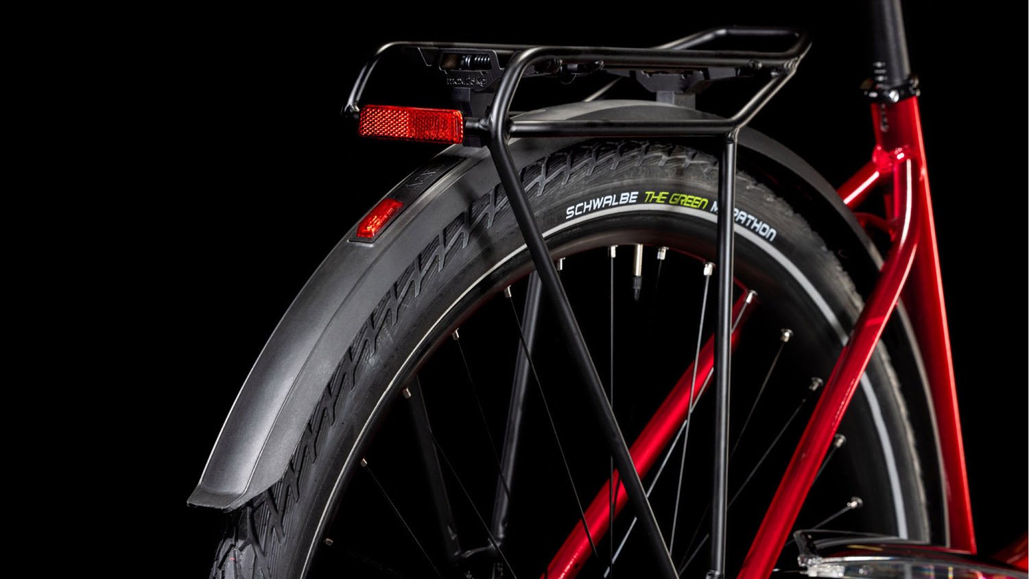Il cuore della Touring è il suo telaio step-through in alluminio di alta qualità, leggero e a doppio spessore, che – nomen est omen – rende la salita e la discesa dalla bicicletta un gioco da ragazzi e, grazie all’Efficient Comfort Geometry, rende piacevoli anche le uscite più lunghe. Un altro punto di forza è la sua maneggevolezza agile e intuitiva. CUBE ha fatto passare i cavi nel tubo obliquo per garantire cambi sempre precisi e una manutenzione ridotta, per una pedalata fluida e senza preoccupazioni. C’è anche un elegante portapacchi semi-integrato per tutto il necessario da portare in tour e un cavalletto piatto per facilitare il parcheggio e il rimessaggio.